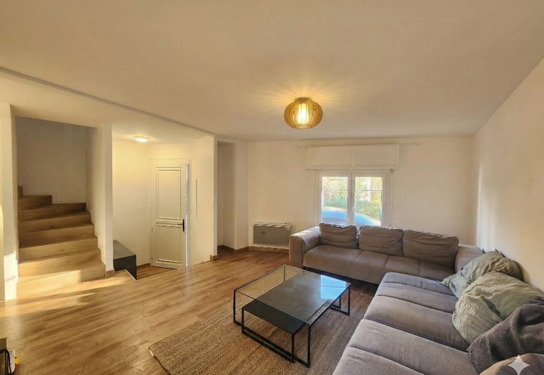 Elle offre un séjour ouvrant sur une terrasse de 10 m², une cuisine équipée indépendante, 3 chambres (dont une en entresol), un bureau/pièce polyvalente, 2 salles de douche avec WC et un balcon. Une place de parking privative devant la maison complète ce confort unique à deux pas de la gare et des commerces.